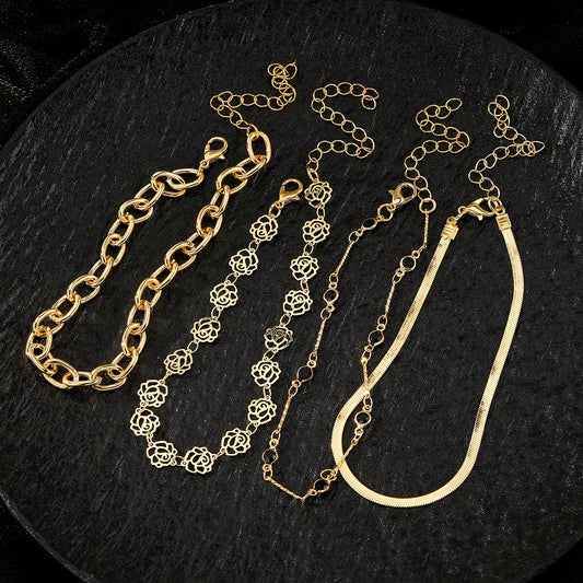 Set de Tobilleras Doradas con Detalles Florales y Cadena Gruesa