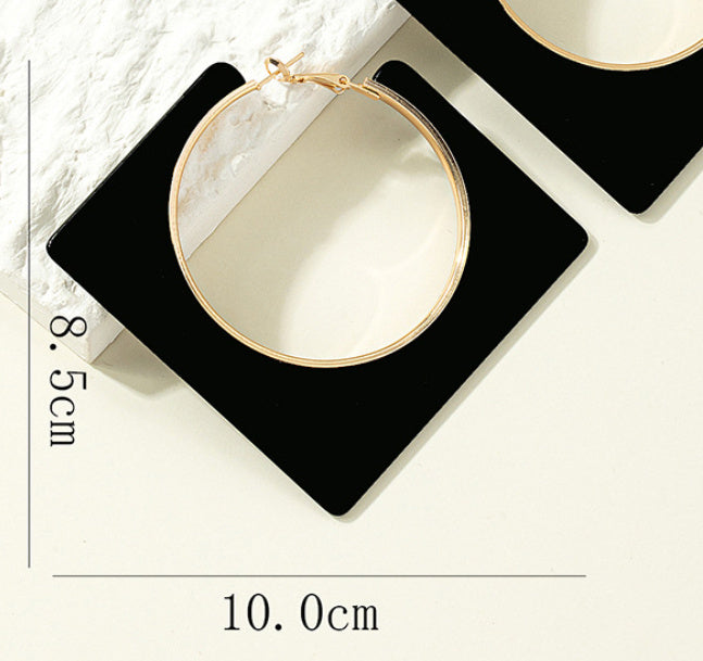 Estos pendientes combinan la forma clásica del aro dorado con un marco cuadrado negro ultra moderno. Su contraste geométrico crea una pieza llamativa, perfecta para looks urbanos, minimalistas o de noche.