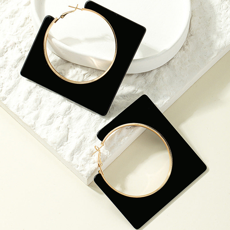 Pendientes Aro Dorado con Marco Negro Cuadrado – Diseño Moderno y Atrevido